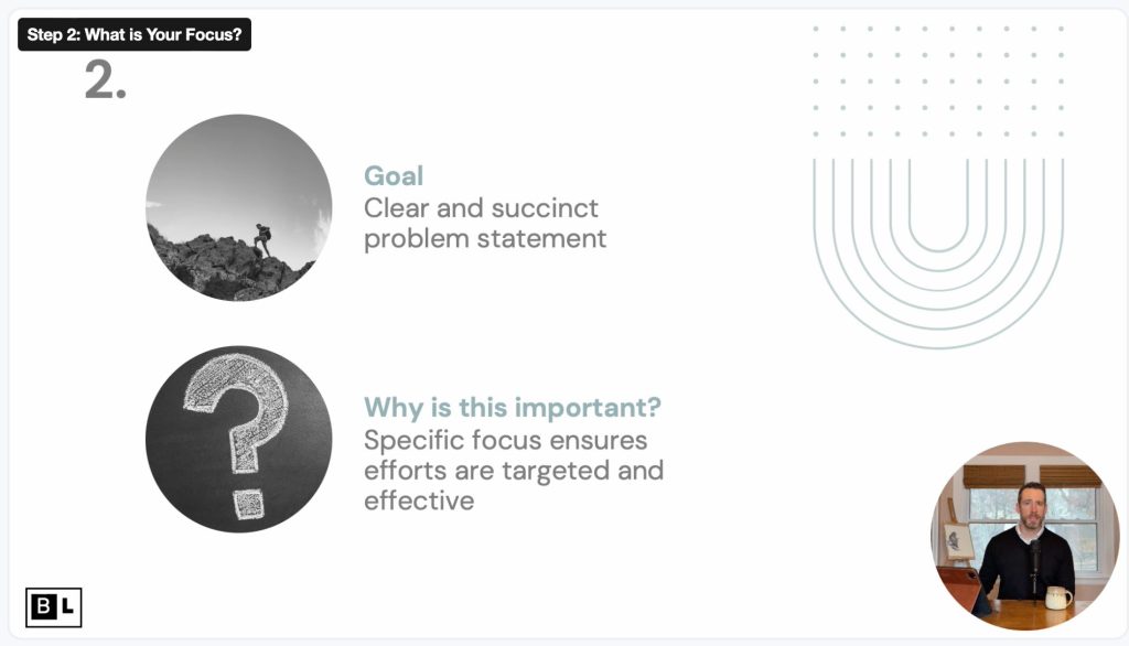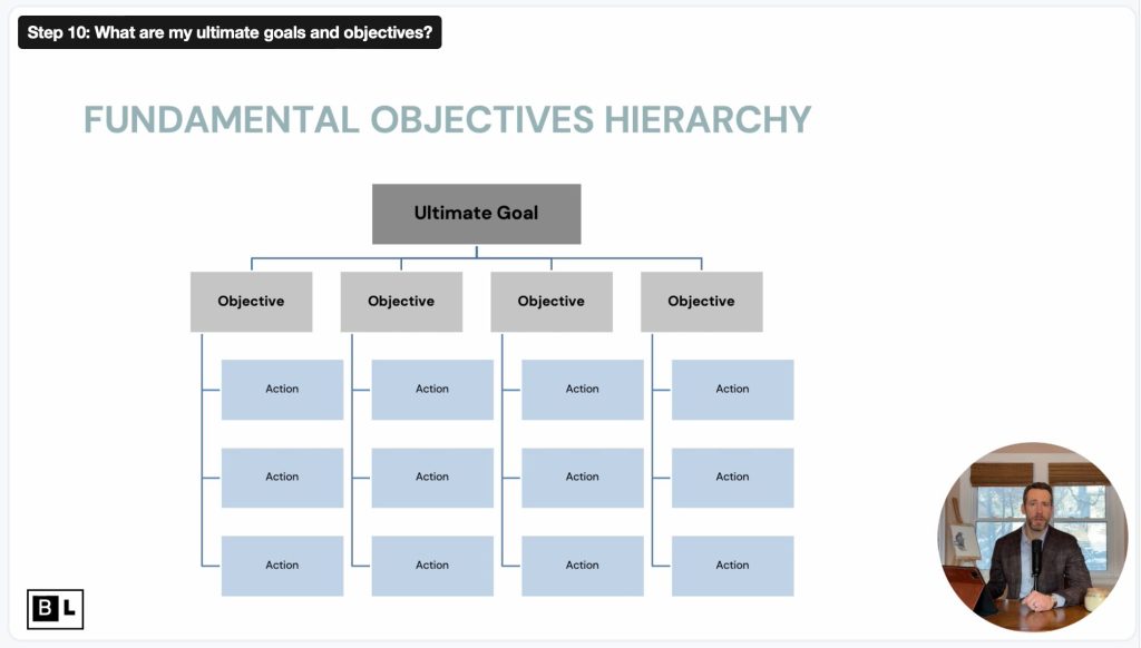 I’ll lead you through a structured process to define your ultimate goal, break it down into specific and measurable objectives that will create real impact, and develop a structured roadmap with clear actions and key stakeholders. By the end, you’ll have a focused, actionable plan that moves beyond vague aspirations and sets you up for meaningful, long-term change.