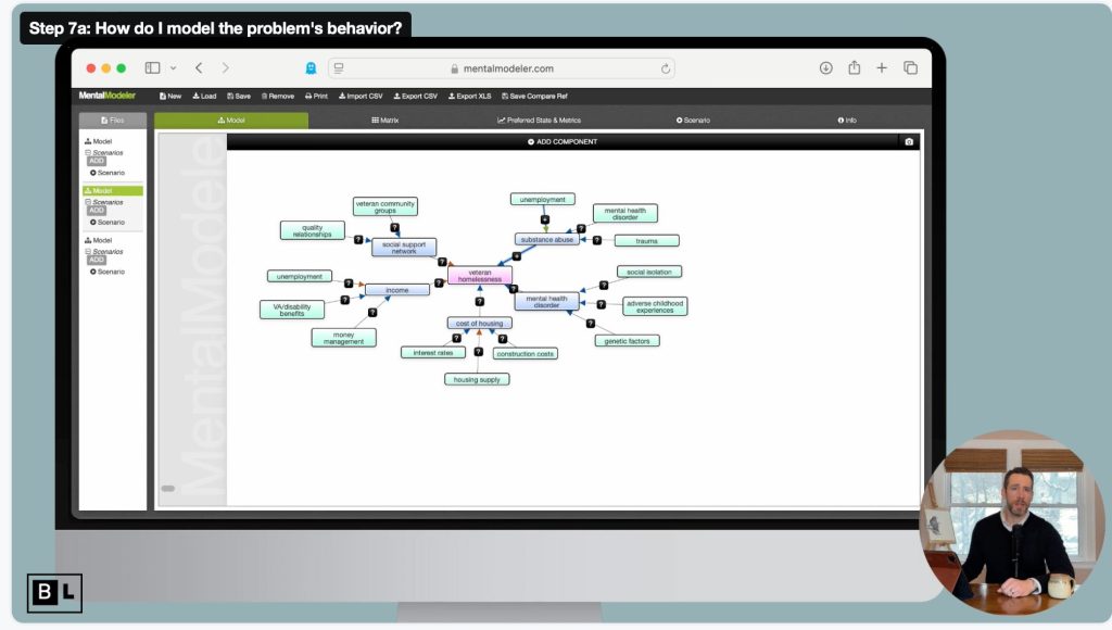 Learn how to visually map out the problem’s dynamics, relationships, causes, and feedback loops using Fuzzy Cognitive Mapping. This hands-on lab will guide you through the process of creating a functional map, simplifying it, and testing solutions by running “what if” scenarios to see how potential interventions will affect the system.