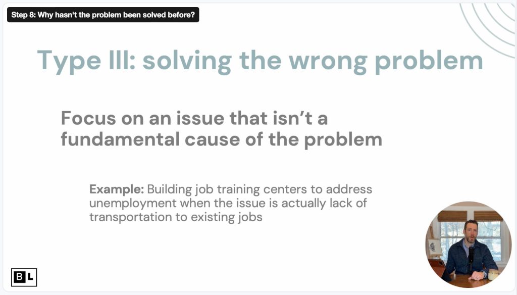 Many well-intended efforts fail because they overlook key system dynamics. In this step, you’ll uncover why past attempts haven’t worked—whether due to blind spots, political obstacles, or deeper structural issues. To help you analyze previous efforts in your community, I’ll walk you through the 8 most common types of system errors that cause solutions to backfire or fall short.